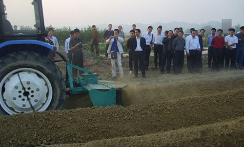 大型旋耕起壟機是由拖拉機動力輸出軸驅動的耕作機具,它是利用刀軸上刀片的旋轉和前進的復合運動,對未耕地或已犁耕地的田地進行碎土作業,其性能特點是碎土能力強,一次旋耕達到一般犁耙幾次的效果。既能適用農田的旱耕或水耕,也能用于鹽堿地淺層耕作覆蓋,以抑制鹽份上升、滅茬除草、翻壓覆蓋綠肥、蔬菜田整地等作業,已成為水、旱地機械化整地的主要配套農機具。配上形壟器可用于起大壟作業,用于起大壟形經濟作物的栽培,成型好,是旱煙地的主要農機具。