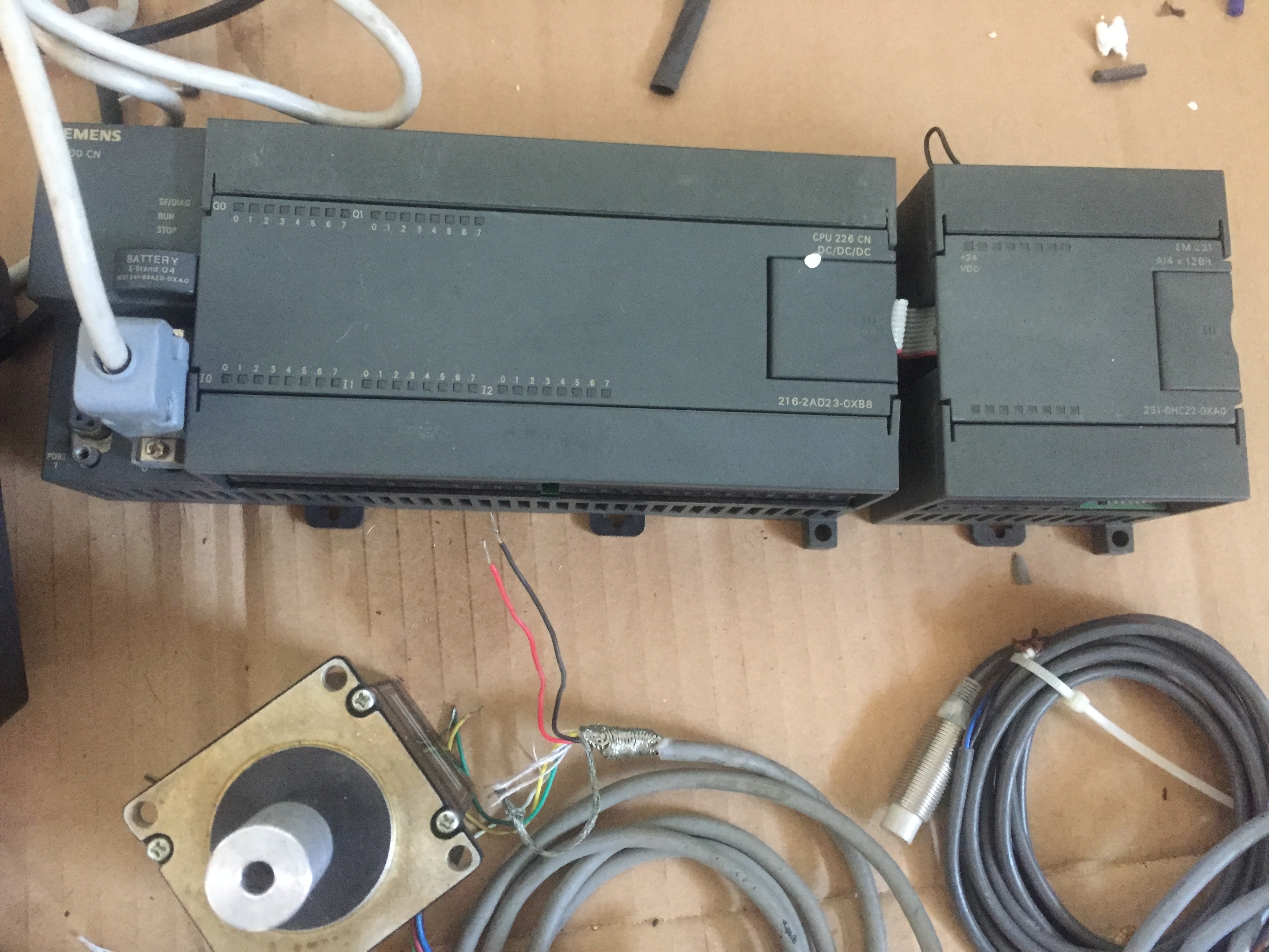 物品包括,西門子主機一臺,EM231一臺,彩色觸摸屏一個,步進一臺,溫度變送器,接近開關,編碼器,接近開關。價格1200