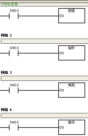 請教:S7200編程怎么編子程序?你看,主程序共4個網(wǎng)絡(luò),每個網(wǎng)絡(luò)都可以可以調(diào)用,怎么編程?主程序的大方框及漢字是怎么編的?請高手指點