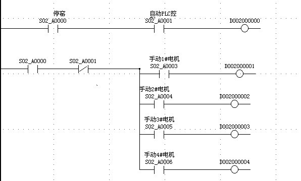 看你的圖,A0000為起動信號,A0001為總停開關(guān)。既然總停按下了,那就是自動狀態(tài)啊!手動狀態(tài)就不可以控制了,A0002,A0003,A0004,A0005的輸入狀態(tài)與PLC沒有關(guān)系啊,是他們本身的開關(guān)狀態(tài)決定的,是閉合的