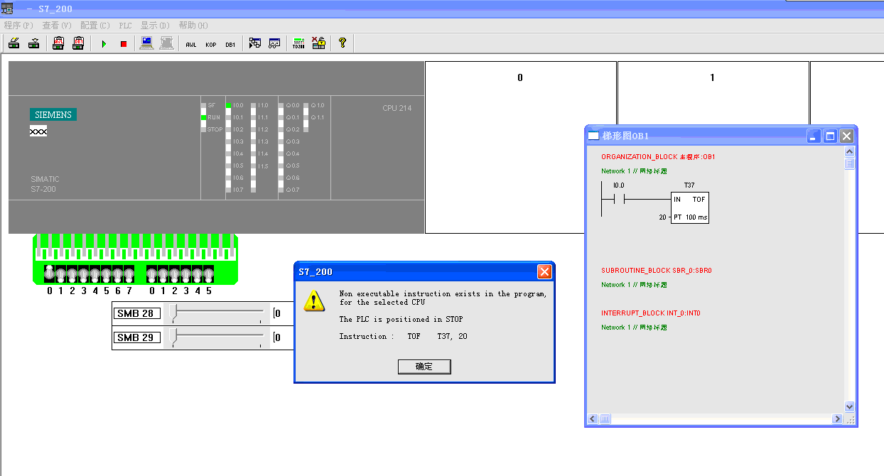 梯形圖一樣,只是將定時器由TON改成了TOF,仿真就行不通了,出現(xiàn)如下圖的畫面