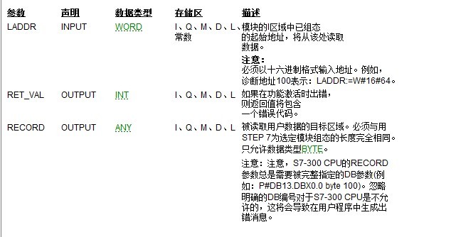 讀取的數據放在PLC的數據塊上 DB10.DBW0開始的的32個字節   ,那么RECORD就要寫  (代表存放首地址+字節數)         P#DB11.DBX0.0 BYTE 32