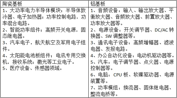 六、陶瓷基板和鋁基板的應(yīng)用領(lǐng)域列舉