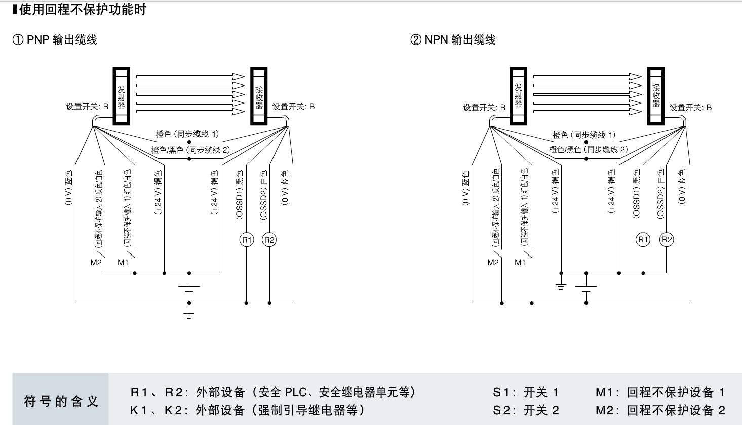 需要使用基恩士安全光幕回程不保護功能。目前接線已經在手冊找到了,請問有人能講清楚具體如何使用嗎?