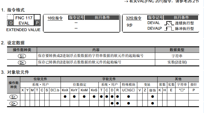 字符型全在低位,先把D104到D112的低位字符用BTOW 變成連續(xù)的字符串型的數(shù)字,再用字符轉(zhuǎn)浮點(diǎn)數(shù)指令EVAL轉(zhuǎn)成浮點(diǎn)數(shù)11.9522