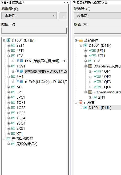 我這個沒有部件,在設備導航器中都不顯示,那怎么能把它拖入安裝板布局圖中呢?