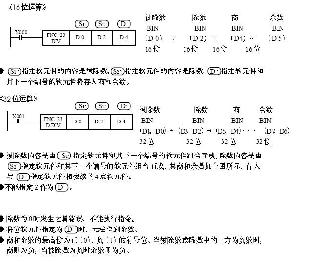 請您翻開您的《FX1S,FX1N,FX2N編程手冊》至185頁,上面所述的DIV指令的用法。