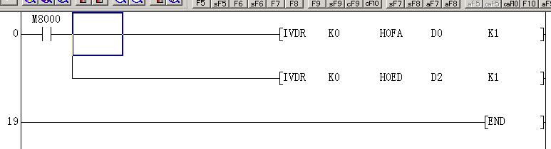 第3步:寫程序. 程序中D0為H2時(shí)變頻器正轉(zhuǎn)起動,為H4時(shí)反轉(zhuǎn)起動,為H0時(shí)停止;D2中的數(shù)據(jù)為變頻器工作頻率,D2為1時(shí)變頻器以0.01Hz的頻率工作...