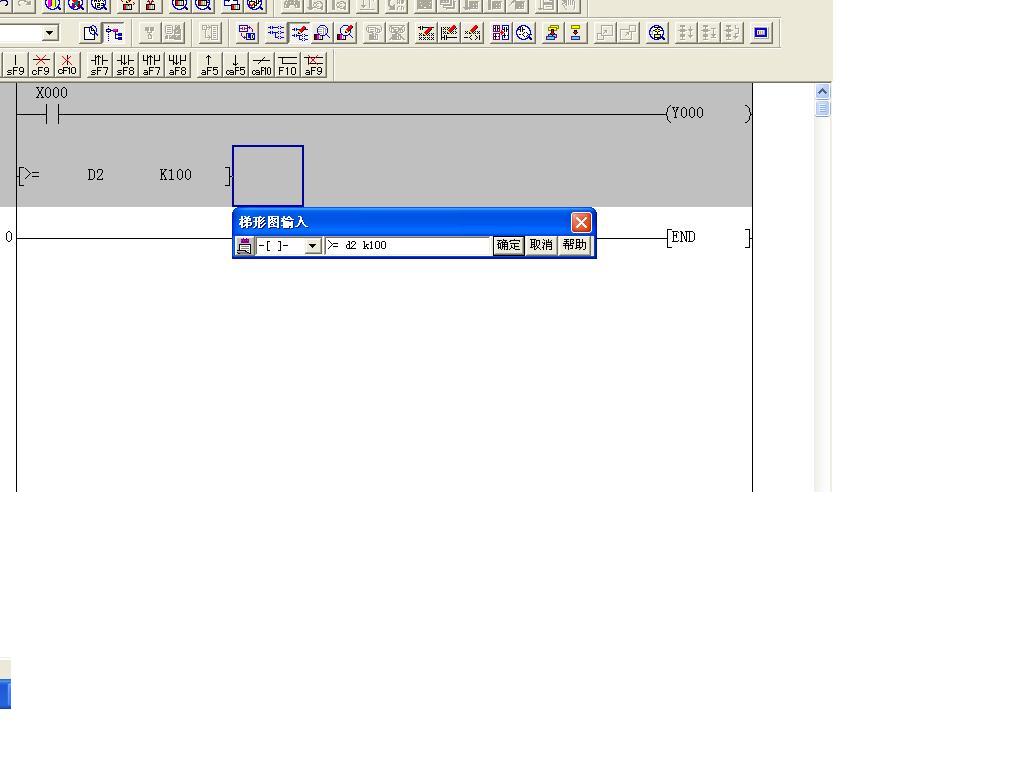 誡請問各位高手:     >=  D2  K100     在程序的左母線上怎么輸入,我就這樣一步一步的輸入結果提示出現指令幫助對話框