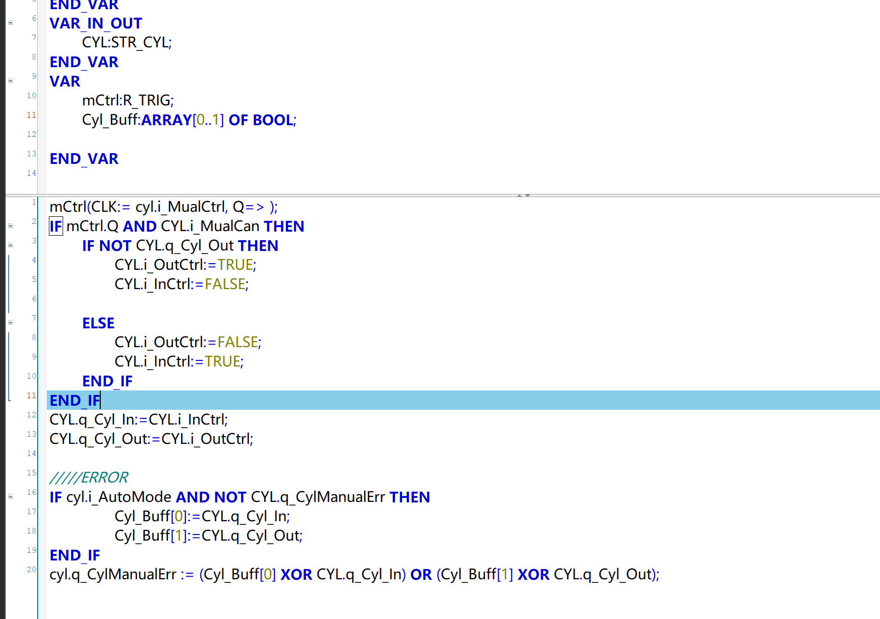 我現(xiàn)在就是傳入一個(gè)結(jié)構(gòu)體變量,自動手動都是操作同一個(gè)變量控制氣缸,這樣需要急停也可以在外部直接控制變量;