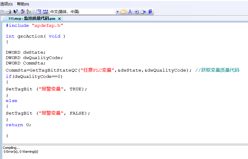 各位看官你們好,又是一篇共享知識點(diǎn)的文章,今天我們來聊一聊腳本在我們上位組態(tài)中的作用。各個廠家的上位軟件或者觸屏軟件都內(nèi)嵌了腳本功能,有的是二次開發(fā)的固定指令格式,有的可以接收廣域的標(biāo)準(zhǔn)語言指令。它帶給我們更多的方便功能的同時也對我們的語言能力提出新的考驗(yàn)。那它們到底好不好用呢?一起來看一下吧。今天我們還是以西家WinCC的C腳本為例。簡單聊兩個腳本的功能。我們畫面的普通按鈕在鏈接布爾變量時,按一次往往只能單一的置位1或者復(fù)位成0。如果組態(tài)兩個動作也可以實(shí)現(xiàn)按下置1松開復(fù)位0。有的時候這些變量在你的程序中起到開關(guān)或者投切的作用,它需要長時間保持在一個狀態(tài),也就是我們常常說的取反。這時候我們引入一條簡單的C腳本指令便可實(shí)現(xiàn)這一功能,按一下變1,再按變0;輕松搞定,如圖所示。還有些時候,監(jiān)控畫面與下位PLC通訊斷開了,設(shè)備運(yùn)行異常后操作工沒有第一時間察覺。這極易導(dǎo)致一些生成事故的發(fā)生。那有的看官說了,通訊斷了之后顯示框不是會出現(xiàn)黃色感嘆號嗎?確實(shí)說的也對,那這個時候就要考驗(yàn)操作人員的眼力和工作認(rèn)真程度了。那我們有沒有辦法讓通訊斷開的時候及時觸發(fā)一個響亮的聲音報警,讓后半夜昏昏欲睡的操作人員快速支棱起來!答案自然是肯定有的。請各位看官長眼(請看圖),一個是PLC的任意一個變量,一個是WinCC的內(nèi)部報警變量;注意,一定要是內(nèi)部變量,這樣才不受PLC通訊的影響。然后把報警變量鏈接到報警器上,送給操作人員一聲響亮的提示聲。(燃起來吧)我們在軟件和各種觸屏中還有VB和它的變種語言腳本的存在。他們各司其職功能各異,能在您思維受阻的時候?yàn)槟_辟一條捷徑。各位不要為自己的語言能力擔(dān)憂,多查看幫助文件,多參考同行經(jīng)驗(yàn)。相信我們遇到問題都會迎刃而解。諸位共勉。OK,礙于篇幅限制,先分享到此吧,熱烈歡迎各位看官的深入討論和批評指正!