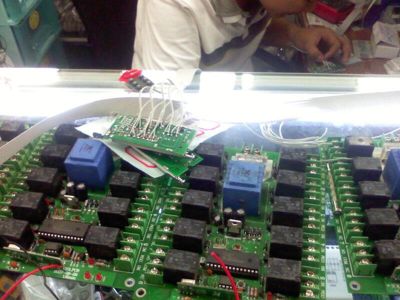 到控制盒上的普通按鈕上.遙控器10路,315兆,超外差接收,200元/套,在電子市場淘到的.