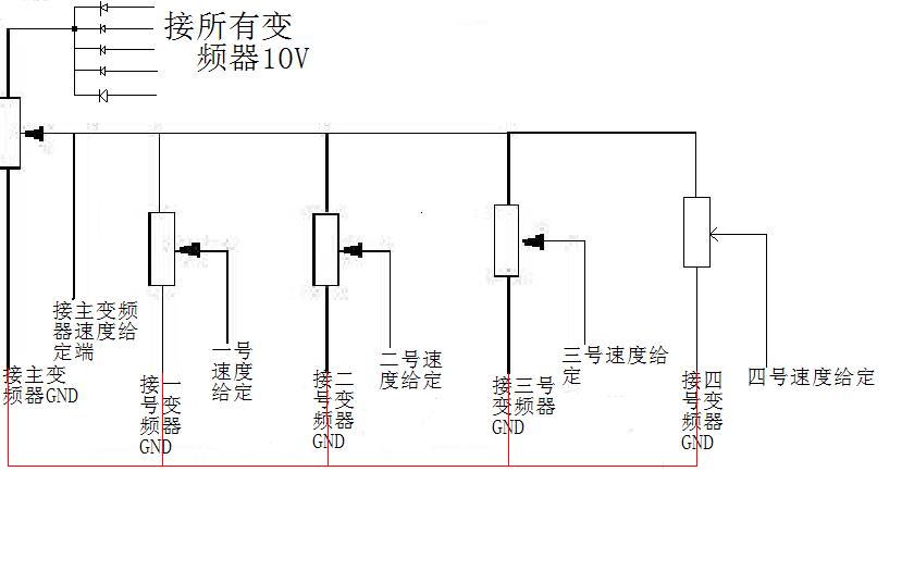 一條流水線,有6臺電動機 主機22KW,副機11KW,5臺,且不考慮松緊自動調節,要怎么才能控制6個變頻器的頻率一樣呢?    考慮松緊自動調節的話,要怎么做才比較好,請大家給提提想法。。。謝謝  期待高手出現。