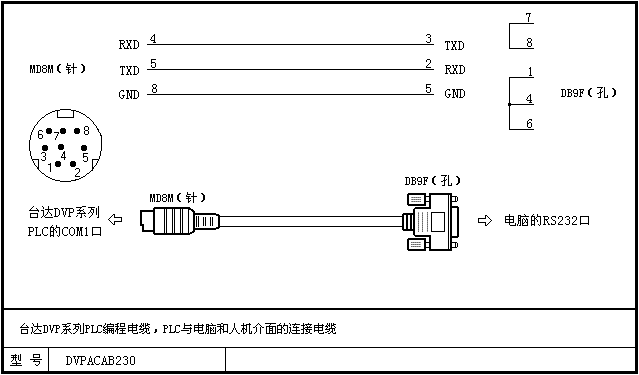 單位有臺設(shè)備是臺達(dá)DVP-24ES的PLC,我想把程序拷下來,做個備份,但是我按照圖上做的編程電纜,為什么電腦和PLC通信不上呢?我選擇好了通信口,232通信模式,ASCII碼傳輸,通信速率依據(jù)PLC設(shè)置,然后選擇了自動偵測,但是怎么老是掃描不到PLC呢?哪里出問題了呢?編程電纜的線接錯了?還是?請大家指點(diǎn)一下,謝謝。