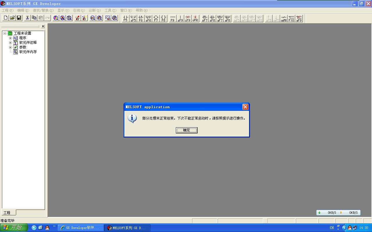 三菱軟件打開和關閉時出現的問題  點擊確定可以正常使用
