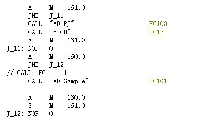 m161.0得電,調(diào)用"AD_PJ"和   "B_CH" 子程序,同時(shí),復(fù)位m161.0。m161.0復(fù)位后,自動(dòng)跳轉(zhuǎn)到J_11。