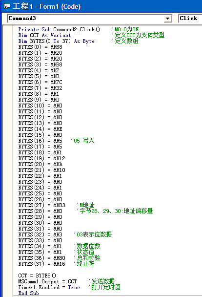 VB中用的控件有:兩個按鈕、兩個標簽Label、一個定時器timer、一個通訊控件MSComm1. 如圖所示: |
