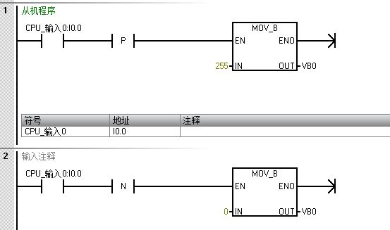 這是個小程序,實驗GET/PUT用的,功能是用主機的I0.0控制從機的QB0,用從機的I0.0控制主機的QB0
