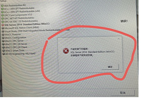 在安裝WinCC V7.4 SP1 ASIA版時,到安裝SQL這一步時出現報警,不能正常安裝,請各位專家指點下,如何解決。
