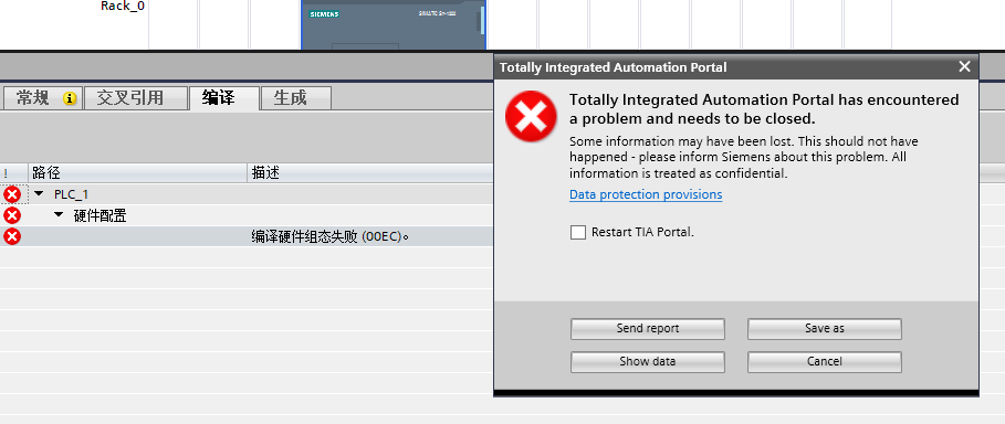 博途V20組態1200PLC ,勾選“在設備中直接設定IP地址” 編譯過程中閃退。