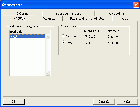 Option下的自定義中去設定界面語言為中文還是英語。
