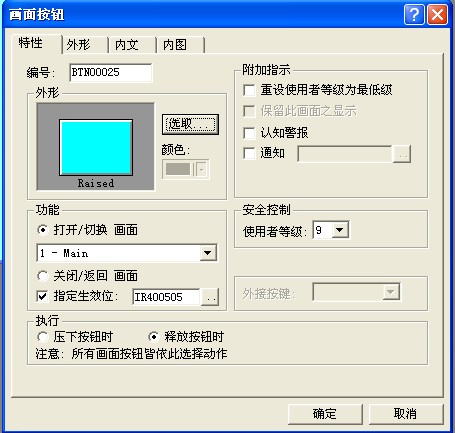指定生效位 ON ,該元件可用,否則該元件無效