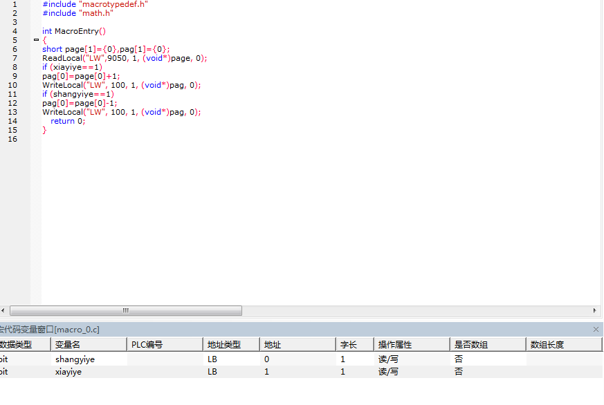 我做的上一頁位變量為LB0,下一頁位變量為LB1。頁碼當(dāng)前值為系統(tǒng)變量LW9050,先把LW9050存放到自己定義的一個字地址A當(dāng)中。按下LB1,A+1存放到另一個字地址B中,然后B存放到LW100中,LW100的值就是要切換的目標(biāo)窗口