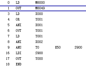 ANS----信號報警設置指令。程序意思就是設備啟動Y1,檢測X2在5秒內要是沒有任何動作,Y0就停止。樓主寫的程序看不懂。