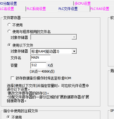 PLC參數--PLC文件設置----使用以下文件一欄里的容量最多能設置多少K?  512K不夠用 能繼續增加嗎?
