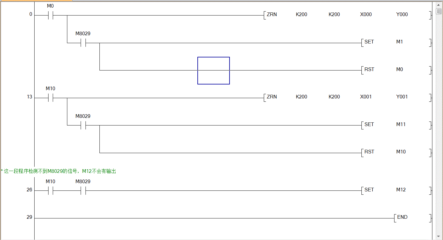 不會干擾,M8029緊跟著回原點指令,要回原地指令在一個程序段。 樓主留言:用了才知道,m8029不會on一個掃描周期的。所以以前不理解。 |