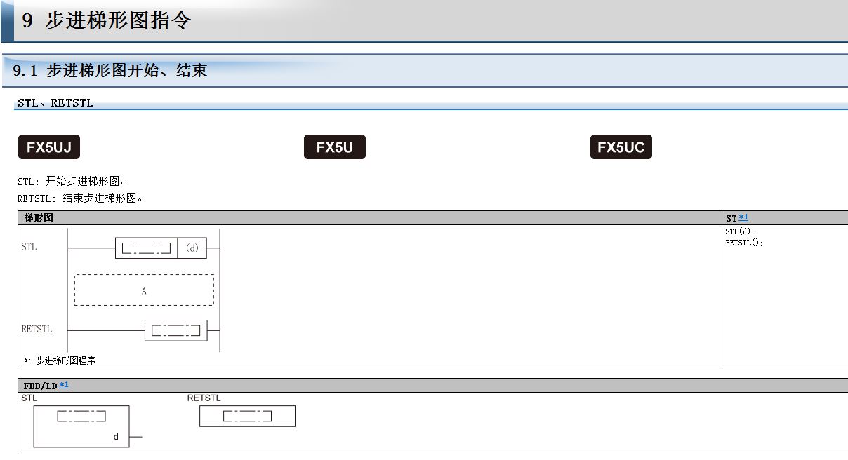 1、就手冊描述,FX5U支持STL指令: