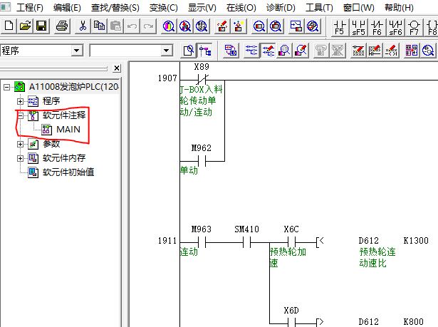 下圖實用 Works2打開的,左邊樹結構里頭找不到軟元件注釋列表。