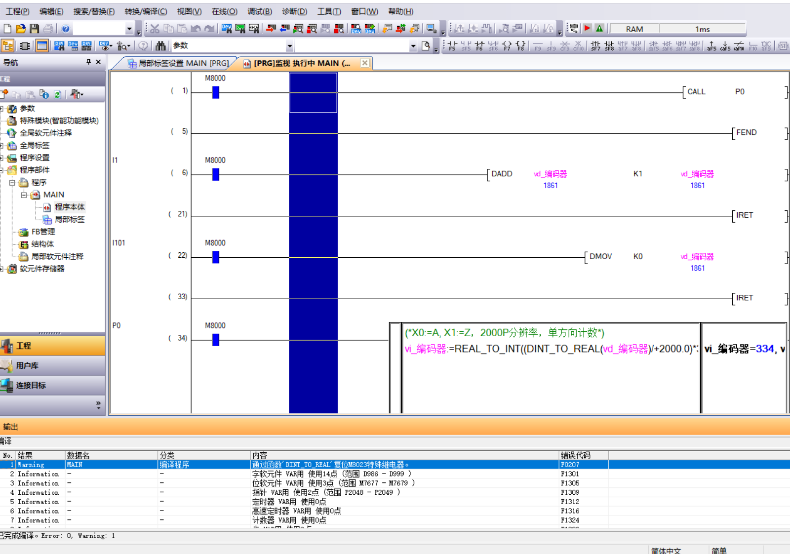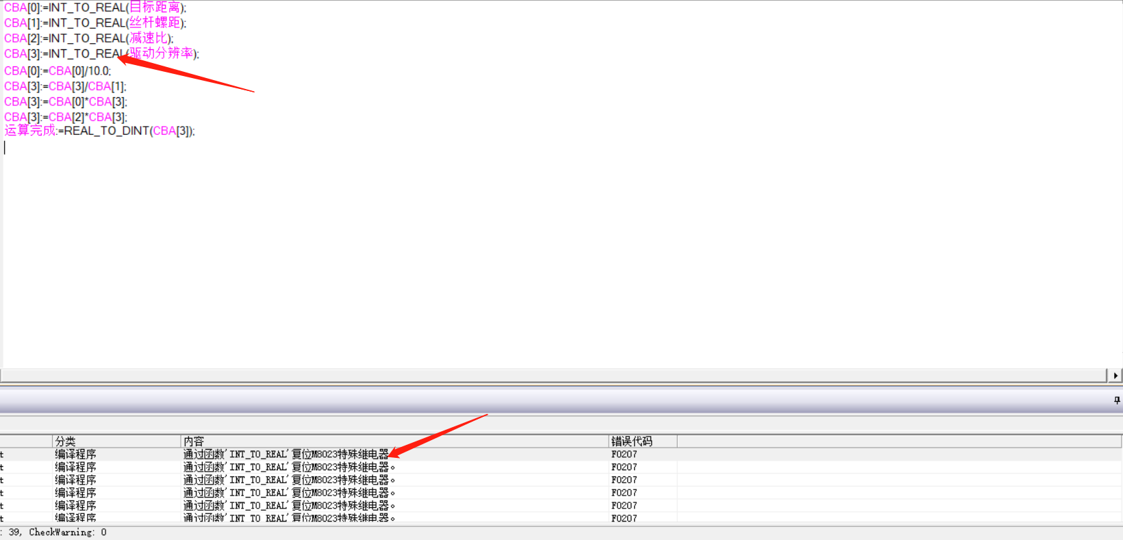 如題,使用順控指令FLT轉換一切正常,調用ST函數就報 通過函數'INT_TO_REAL'復位M8023特殊繼電器。    F0207 只是警報,能正常編譯