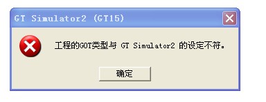 2.仿真時將項目中的GOT類型與剛開啟仿真時選擇的GOT類型設(shè)置為一致,如本例中仿真啟動為GT15系列,而你項目中GOT類型為GT11,則會出現(xiàn)這個警告,啟動仿真時選擇為GT11即可。