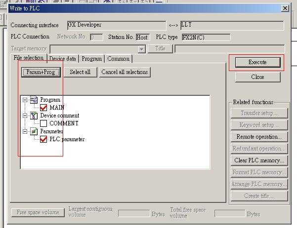 1.Plc通電,並將指撥開關撥到stop位置 2.打開電腦gx-d編程軟件,選擇新建工程,然後再彈出的對話框中選擇Plc系列(fx)cpu類型(fx2n(c))後點ok 3.編輯一段程序,然後按F4轉換 4.點擊工具攔"連線"---"傳送設定"選擇RS232通訊方式並選擇端口和波特率 5.點擊工具攔"連線"---"寫入到PLC",選擇程序加參數(shù)點擊執(zhí)行 |