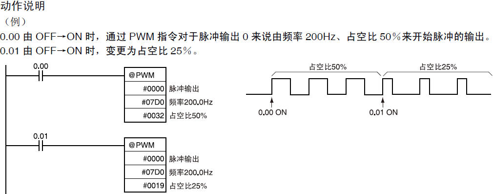 時間的比率。使用PWM 指令從內置輸出中產生PWM 脈沖。在脈沖輸出期間可以變更占空比。