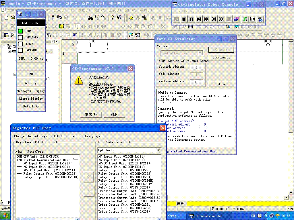我的CX-Simulator1.8 與CX-Prongrammer7.2 進行在線模擬的時候老是出現錯誤,具體報錯見圖片