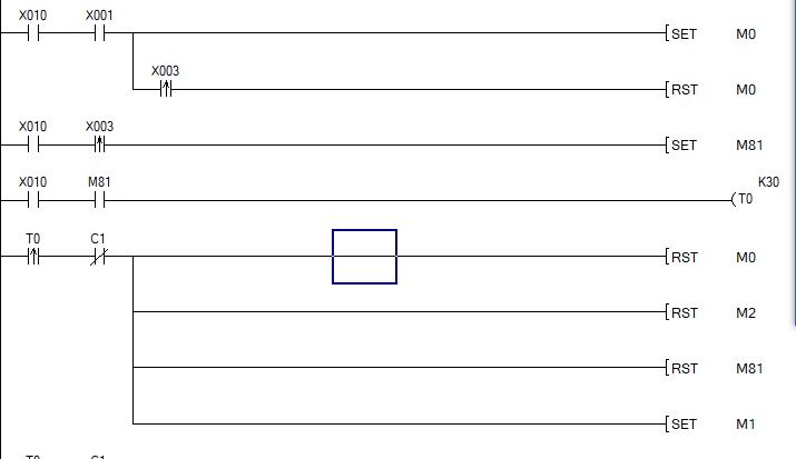 解決辦法是77步那里的OUT M0改成SET M0然后在下面另加一個相反的條件RST M0。或者直接將77步的M0改為其它輔助觸點比如M70,M88什么的。再用這個觸點跟后面的M0關聯起來。