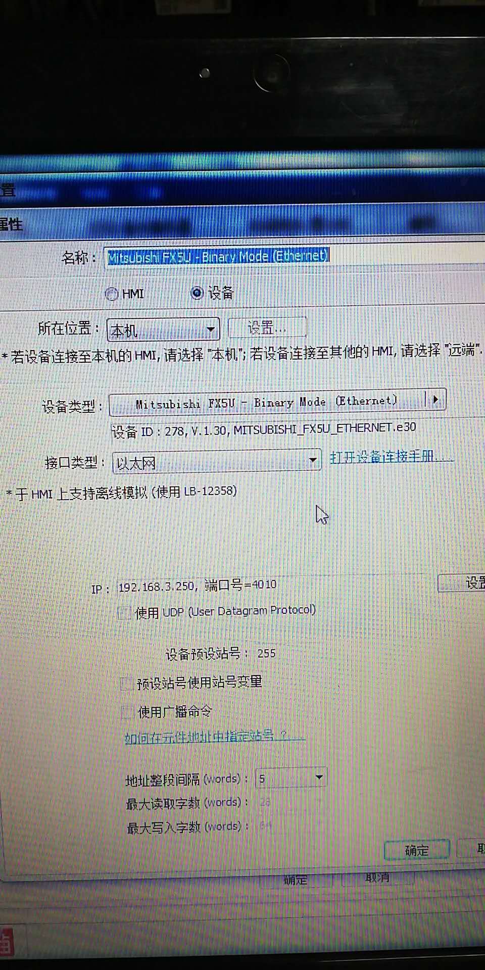 MT8071設成192.168.3.250,FX5U要設成192.168.3.251或其它。不能兩個設備都是同一個IP
