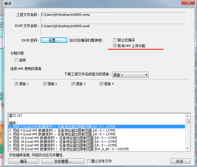 exob文件仿真都正常,下載到觸摸屏也可以用,但是反編譯后再編譯就出錯差不多一千個錯誤