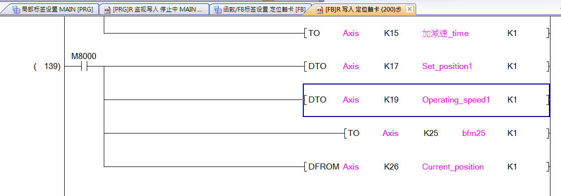 #BFM25做絕對位置控制第1個位到第7個位都要用到,這樣寫你不管是做絕對或者相對位置都可以靈活應用,錯誤清除輸出M0就可以,以此類推。你想直接驅動JOG+,或者其它,那你至少要在原來FB的基礎上加上8個位地址,把#BFM25的功能對應的地址分出來。這樣你的功能塊估計會很龐大。