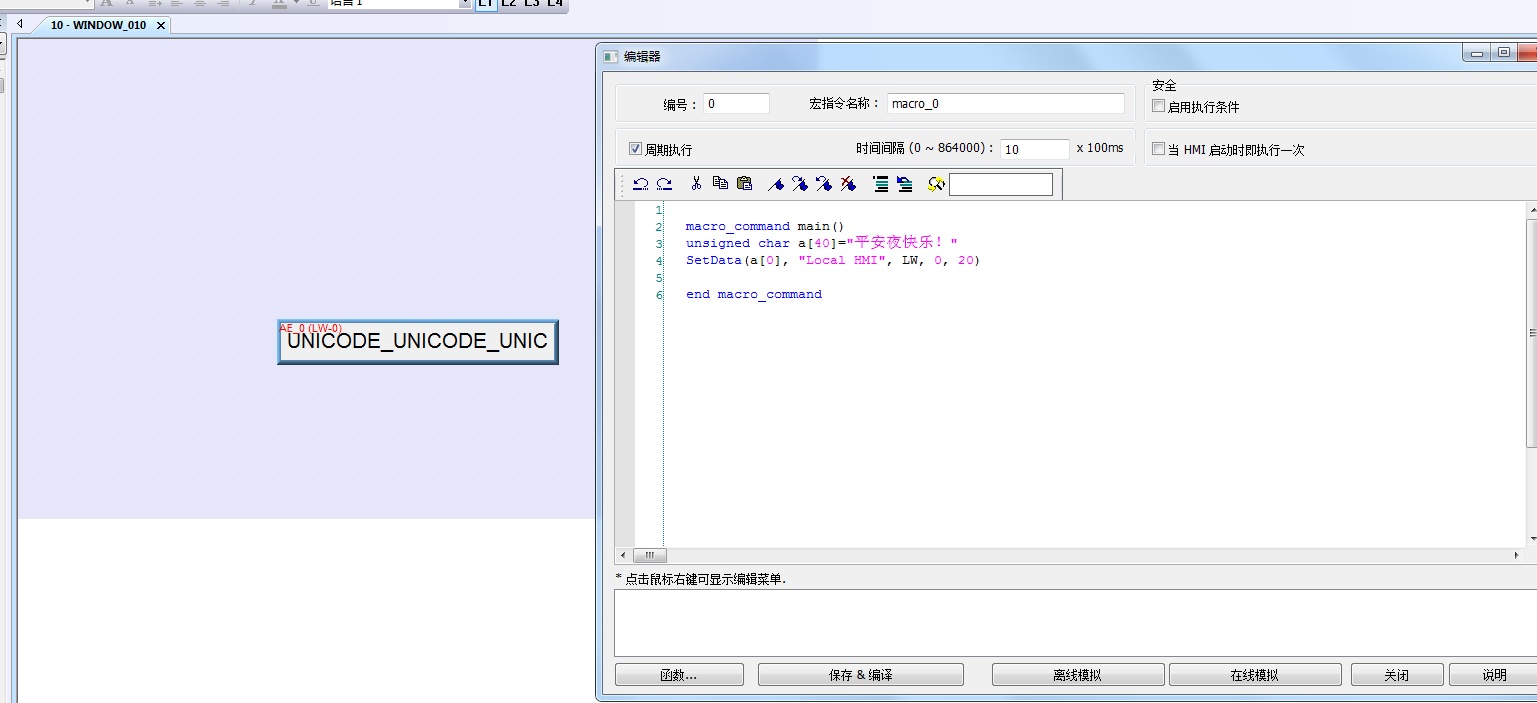 如圖所示,宏指令寫入內(nèi)容,顯示中文