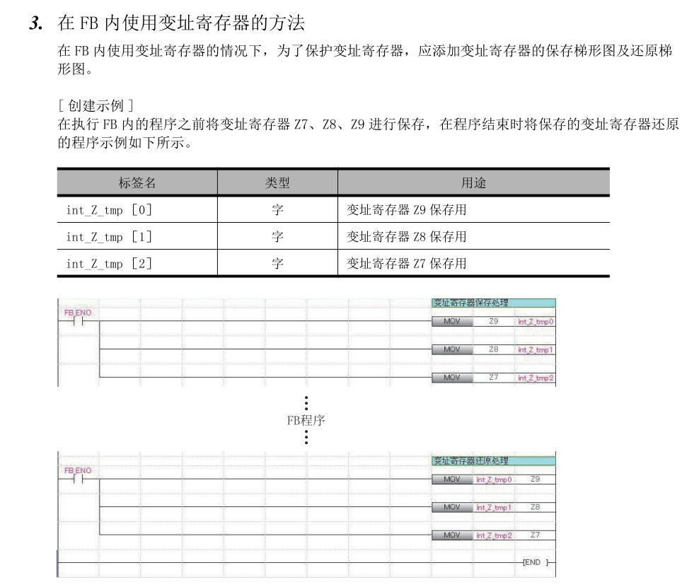 前幾天打了三菱客服電話,我問他FB塊里面,能不能用變址寄存器來修飾特殊軟元件。客服說不行,至于為什么,他也沒說出個所以然。他讓我把特殊軟元件放在FB塊外面,從輸入輸入引腳輸入。我覺得這樣太繁瑣了,做FB塊沒有什么必要了。不知大家有沒有什么好的經驗。 |