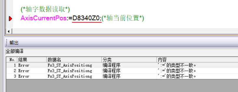 引用引用第3樓木林森于2021-07-09 22:00發(fā)表的 :Works2的ST語(yǔ)言不支持定義D寄存器類型,類型不對(duì)不能代入,你這個(gè)只能用指令DMOV傳送類,不能用 := 代入數(shù)值。