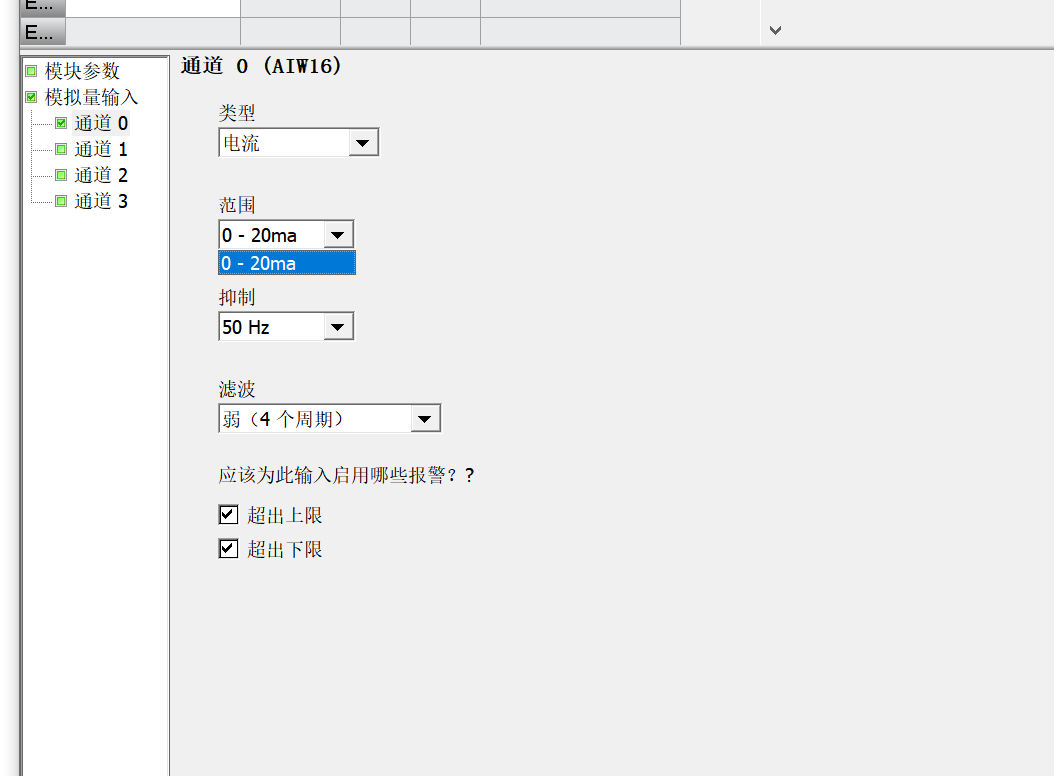 EM AE04模擬量輸入模塊沒有4-20mA范圍選擇,只有0-20mA