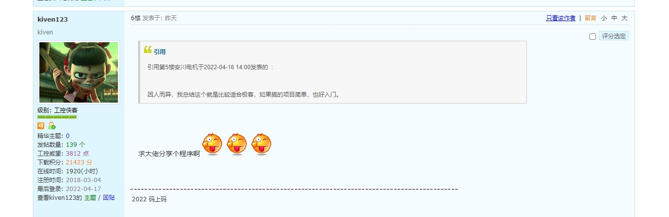 在綜合討論區(qū)發(fā)個貼討論討論,引來噴子,你要程序你去程序下載去啊。 ![]() 這種人不知道在公司是怎么樣的 在社會上又有沒有被毒打。 |