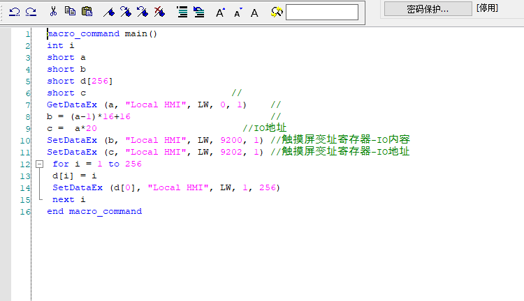 1 先建立一個項目選單-下拉式。預設好需要選擇的內容, 通過它的監控地址,分別去做變址計算。得出b 和c  分別是IO內容的變址和IO地址的變址