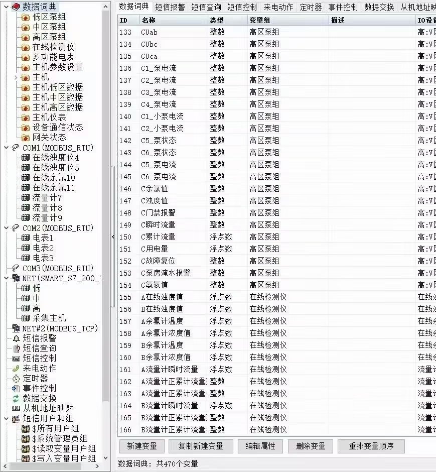 生活供水設備使用遠程模塊的485口采集儀表數據,并寫入smart plc,中間無需編寫通訊程序。同時實現手機app,電腦監控,短信報警
