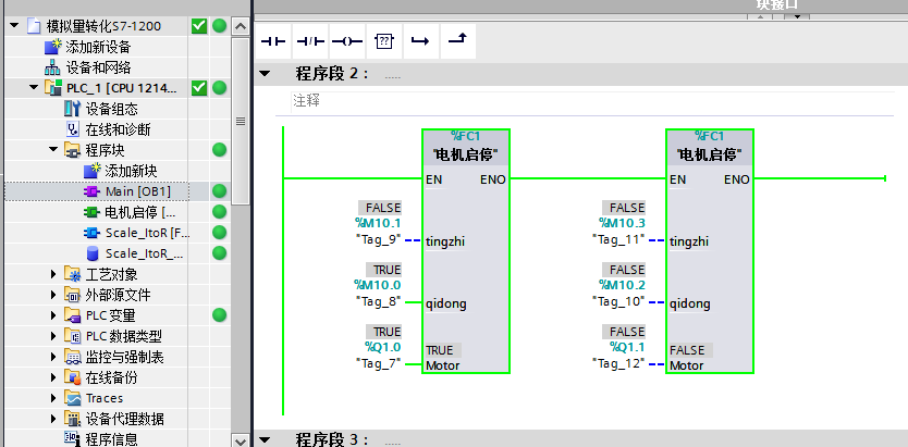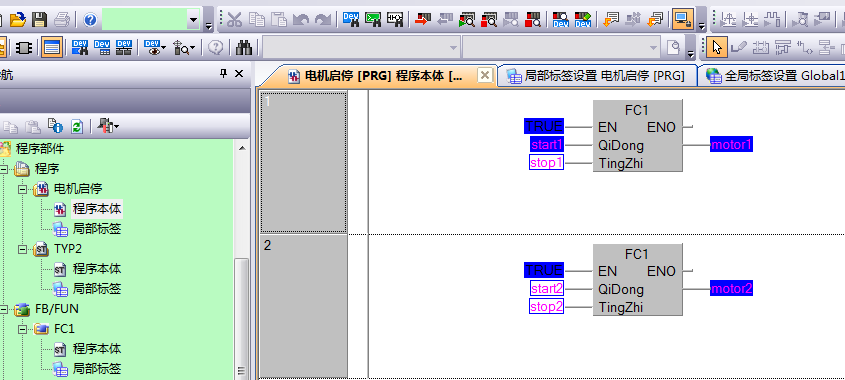 多次調用函數實現控制多電機的啟停程序。 在博圖1200中程序執行正常,但在三菱中程序執行混亂,怎么解決?多次調用功能使用注意什么? S1 ![]() S2 |