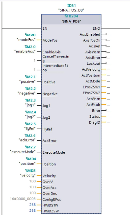 更進(jìn)一步,使用FB284來(lái)控制伺服,這控制字你也不用管了,把需要的定位功能往它管腳上拖就行了。